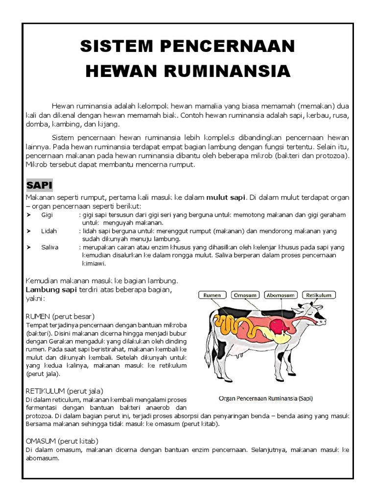 Sistem Pencernaan Pada Hewan Memamah Biak Atau Ruminansia Seperti Sapi Kambing Dan Kerbau Materiedukasi Com